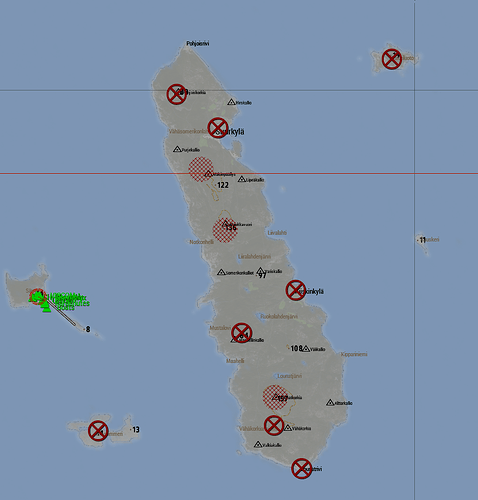 Task Force Noctem will be deployed to a small friendly military base located nearby and given a number of supplies. They must use these to take over the island and related territories, at their own discretion of which targets are most important. If TFN should run out of supplies, they will be forced to retreat and Suursaari will remain unconquered.