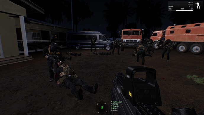 [user avatar=“https://assets-cloud.enjin.com/users/7849506/avatar/small.1590497467.png” name=“Seb”]7849506[/user] - Great intel, great gun runs (chasing a jet ski!!!) and an amazing evac at the end. I don’t know what happened with the flashbang, but we survived.