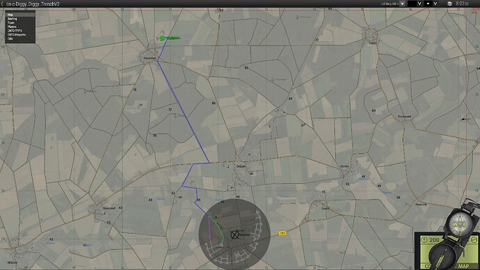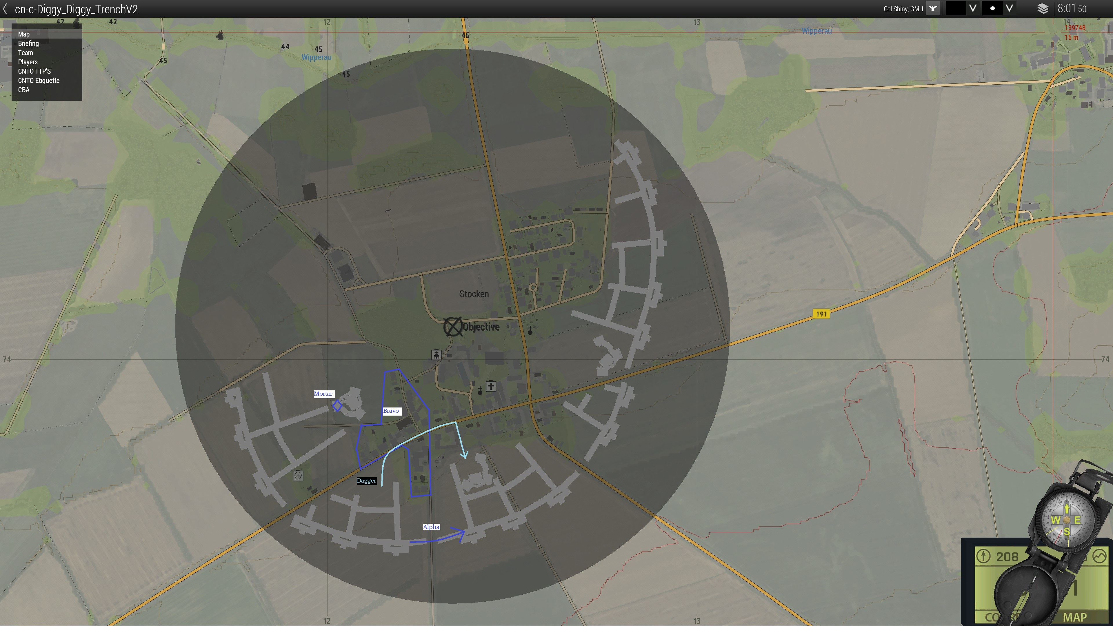 The attack plan is fairly basic. We’ll be assaulting the west side in two groups: Alpha and Dagger will be entering the trench network from the north (into ZIRCON), while Bravo and Mortar will be assaulting what appears to be a mortar pit just behind said trench network. In the event that Bravo is empty, Alpha will assault the pit first, and then move to the trench network